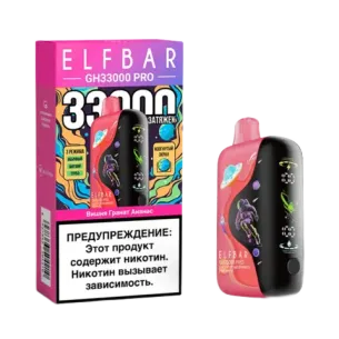Популярная модель ELF BAR GH33000 сочетает в себе простоту использования и высокое качество исполнения. Интернет-магазин гарантирует быструю доставку, а также предоставляет возможность заказать товар оптом или в розницу. В линейке представлены яркие вкусы, такие как Ледяной Виноград, Вишня Гранат Ананас и Киви Ананас Персик, каждый из которых раскрывается насыщенным ароматом и мягкой тягой. Благодаря этому девайс стал одним из наиболее востребованных решений среди ценителей вейпов.